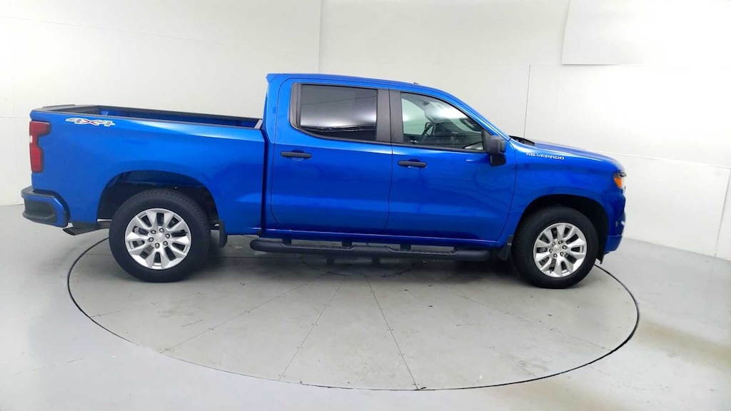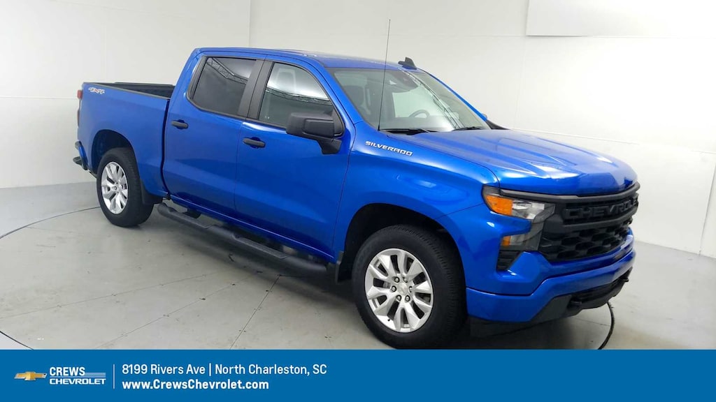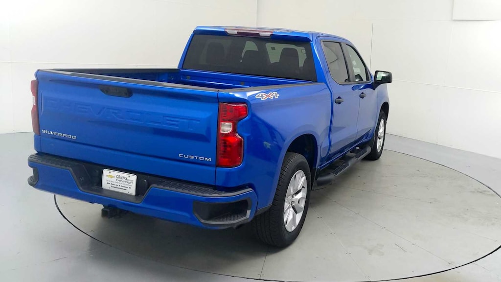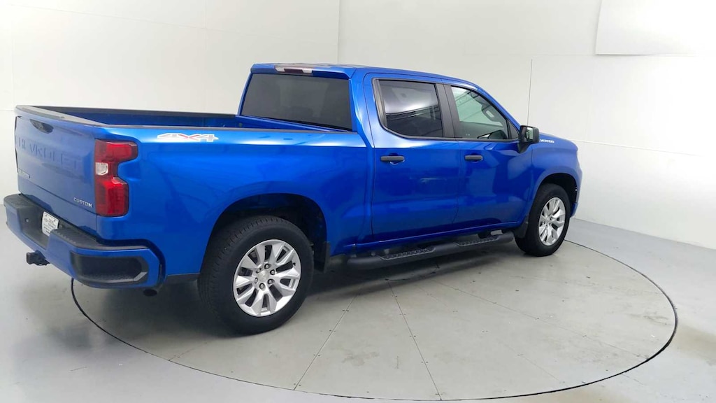 CARFAX 1-Owner, CarBravo Certification  Certified, Excellent Condition. Onboard Communications System, Satellite Radio, Back-Up Camera, Rear Air, 4x4, Turbo Charged Engine, SEAT, CLOTH REAR WITH STORAGE PACKAGE... Hitch, Aluminum Wheels ======KEY FEATURES INCLUDE: 4x4, Rear Air, Back-Up Camera, Satellite Radio, Onboard Communications System Serviced here, Non-Smoker vehicle Chevrolet Custom with Glacier Blue Metallic exterior and Jet Black interior features a 4 Cylinder Engine with 310 HP at 5600 RPM*. ======OPTION PACKAGES: AUTO-LOCKING REAR DIFFERENTIAL, SEAT, CLOTH REAR WITH STORAGE PACKAGE 60/40 folding bench for Crew Cab models, includes seatback storage on left and right side, center fold out armrest with 2 cupholders, (includes child seat top tether anchor), AUDIO SYSTEM, CHEVROLET INFOTAINMENT 3 SYSTEM 7" diagonal color touchscreen, AM/FM stereo. Additional features for compatible phones include: Bluetooth  audio streaming for 2 active devices, voice command pass-through to phone, wired Apple CarPlay  and Android Auto  capable. (STD), ENGINE, 2.7L TURBO HIGH-OUTPUT (310 hp [231 kW] @ 5600 rpm, 430 lb-ft of torque [583 Nm] @ 3000 rpm) (STD), TRANSMISSION, 8-SPEED AUTOMATIC, ELECTRONICALLY CONTROLLED with overdrive and tow/haul mode. Includes Cruise Grade Braking and Powertrain Grade Braking (STD). ======A GREAT TIME TO BUY: Was $38,772. This Silverado 1500 is priced $3,500 below J.D. Power Retail. ======SHOP WITH CONFIDENCE: CARFAX 1-Owner 6-Month/6,000-Mile Bumper-to-Bumper Limited Warranty on vehicles up to 10 years or 100,000 miles, This warranty begins when the manufacturers warranty ends, 30day/1,000mile limited powertrain warranty on vehicles more than 10-15 years or up to 150,000 miles, 10-day/500-mile exchange policy. Whichever comes first. Vehicle exchange only. Limitations apply. 1-month trial of OnStar  and Connected Services or OnStar Guardian app. 3-month SiriusXM trial subscription, 4,000+ service locations nationwide, Roadside Assistance and Courtesy Transportation for the duration limited and powertrain warranty, See participating dealer and warranty booklet for limited warranty eligibility and coverage details.*Except for non-GM vehicles in the State of California, where coverage will be provided by a vehicle, See dealer for details. ======VISIT US TODAY: You've got a friend in the car business  Pricing analysis performed on 11/3/2025. Horsepower calculations based on trim engine configuration. Please confirm the accuracy of the included equipment by calling us prior to purchase.