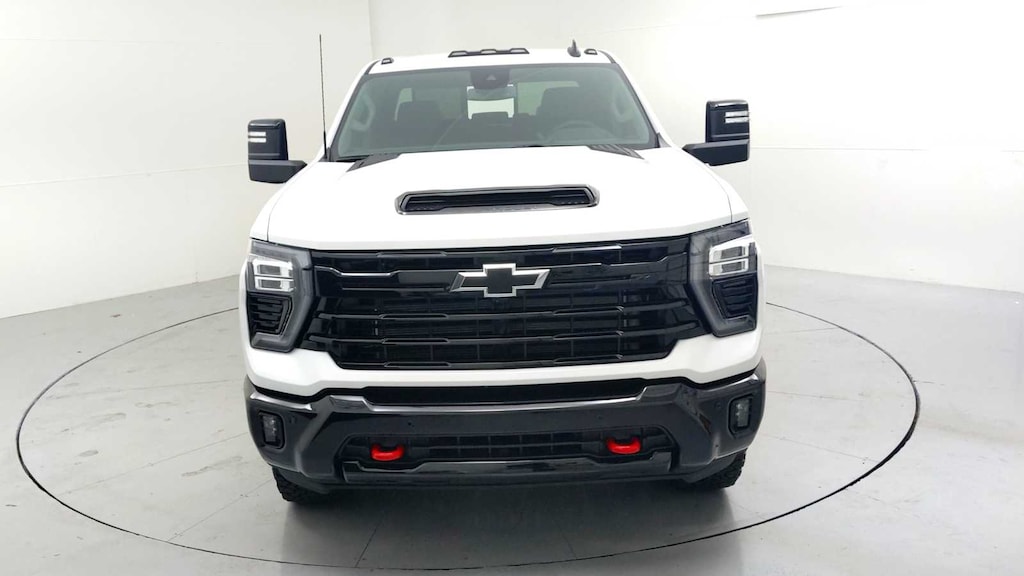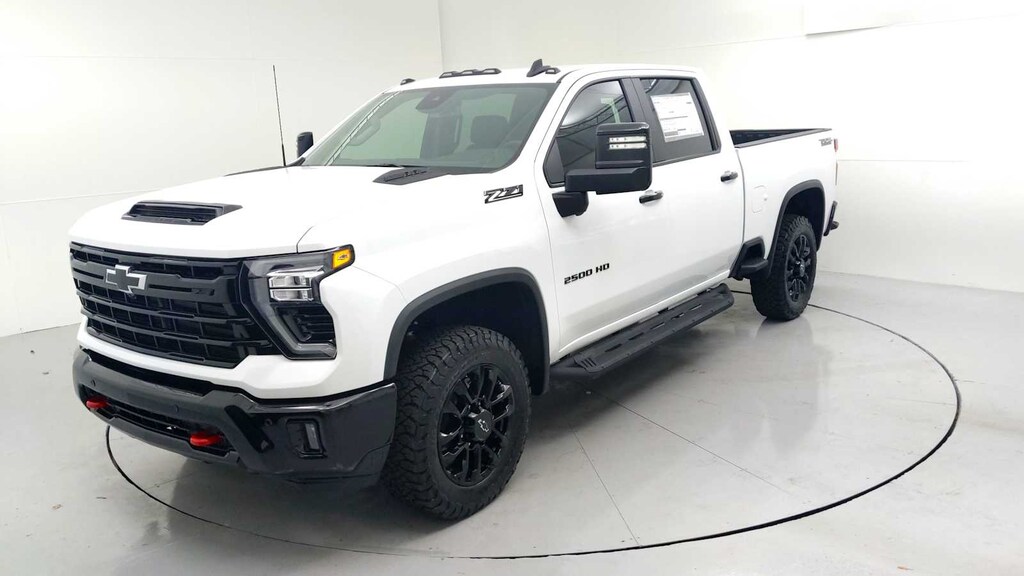 TRAIL BOSS PACKAGE Includes black grille bar with "Chevy Black Bow Tie", Black grille inserts, (SRI) 20" High gloss Black painted wheels, (VB5) High Gloss Black painted front bumper, (VT5) High Gloss Black painted rear bumper, (UGA) Red Tow Hooks, (QFG) LT275/65R20 BF Goodrich off-road tires, Black skid plate, Black badging, Black bowtie on horn pad, (DP6) High Gloss Black mirror caps, Black hood vent surround, High Gloss Black door handles and (CGN) Chevytec spray-on bedliner. Includes high-intensity LED headlamps and (DWI) trailer mirrors. SAFETY PACKAGE includes (UD5) Front and Rear Park Assist, (UKV) Trailer Side Blind Zone Alert, (UFG) Rear Cross Traffic Alert, (UV2) HD Surround Vision, (UVN) Bed View Camera and (TRG) Trailer Camera Provisions (Includes (UET) Trailering App. LPO, OFF-ROAD ASSIST STEPS, 3" ROUND TUBULAR, BLACK (dealer-installed), CONVENIENCE PACKAGE includes (UF2) Cargo bed LED lighting, (CJ2) dual-zone automatic climate control, (A2X) 10-way power driver seat including power lumbar, (N37) manual tilt/telescoping steering column, (T3U) LED fog lamps, SEATS, FRONT BUCKET with center console, for Crew Cab and Double Cab models, CONVENIENCE PACKAGE II includes (PZ8) Hitch Guidance with Hitch View, (UET) Trailering App, (A48) rear sliding power window and (UG1) Universal Home Remote. Includes (R7O) Cloth Rear Seat with Storage Package. REMOTE START PACKAGE includes (BTV) Remote Start, (UTJ) Theft Deterrent System and (C49) rear-window defogger, Z71 OFF-ROAD PACKAGE includes (Z71) Off-Road suspension with off-road tuned twin tube Rancho shocks, (JHD) Hill Descent Control and (NZZ) skid plates (transfer case and oil pan) (Includes (QXT) LT265/70R17 all-terrain, blackwall tires and molded in color Black grille. MIRRORS, OUTSIDE POWER-ADJUSTABLE VERTICAL TRAILERING WITH HEATED AND AUTO-DIMMING UPPER GLASS lower convex mirrors, turn signal indicators, puddle lamps, (U12) perimeter lighting, auxiliary lighting, power folding/manual extending (extends 3.31" [84.25mm]) Includes (DD8) auto-dimming rearview mirror which can be upgraded to (DRZ) Rear Camera Mirror.), TAILGATE, MULTI-FLEX with six functional load/access features, NOTE: Auto release can be disabled if ball hitch is installed. See Owner's manual for details, HEAT PACKAGE includes (KA1) Heated driver and passenger seats and (KI3) Heated steering wheel, LPO, ALL-WEATHER FLOOR LINERS 1st and 2nd rows, (includes Z71 logo on front mats), AUDIO SYSTEM, CHEVROLET INFOTAINMENT 3 PREMIUM SYSTEM with Google built-in compatibility (select service plan required, terms and limitations apply) including navigation capability, 13.4" diagonal HD color touchscreen, includes multi-touch display, AM/FM stereo, Bluetooth® streaming audio for music and most phones; featuring Wireless Apple CarPlay® and Wireless Android Auto® capability for compatible phones, advanced voice recognition, in-vehicle apps, personalized profiles for infotainment and vehicle settings (STD), ENGINE, 6.6L V8 with Direct Injection and Variable Valve Timing, gasoline, (401 hp [299 kW] @ 5200 rpm, 464 lb-ft of torque [629 N-m] @ 4000 rpm) (STD), TRANSMISSION, 10-SPEED AUTOMATIC (STD), SEAT, UP-LEVEL REAR WITH STORAGE PACKAGE 60/40 Split rear seat with center armrest, right, and left seat back storage, and under seat jack storage (Crew Cabs Only) Rear seat leather appointed.