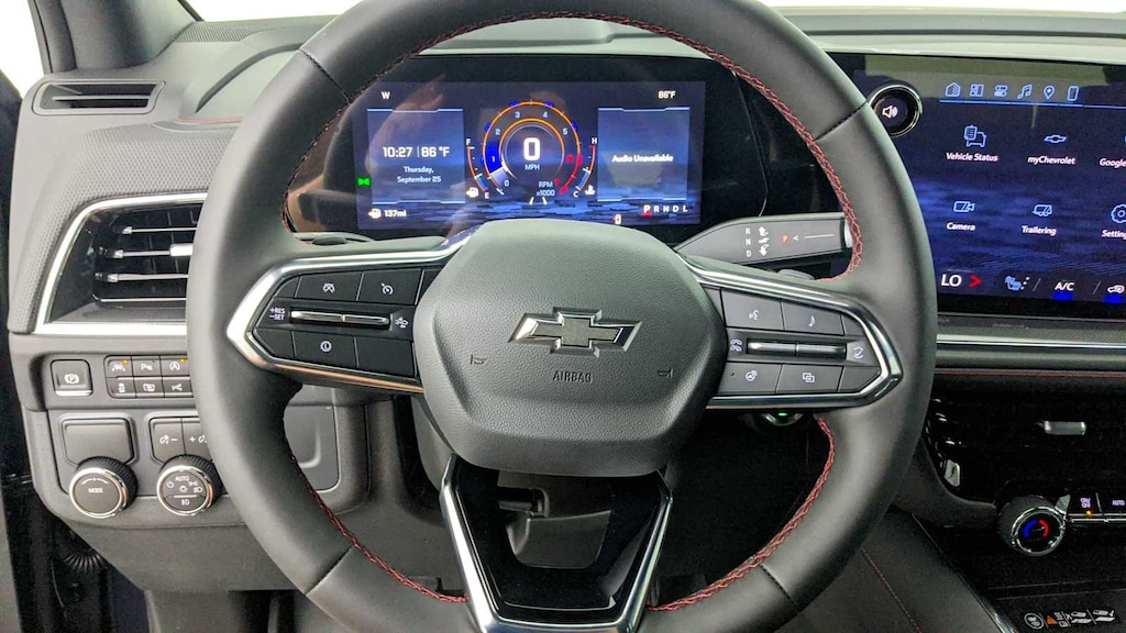 Leather Seats, Third Row Seat, Power Liftgate, Rear Air, Back-Up Camera. Chevrolet RST with Dark Ash Metallic exterior and Jet Black/Victory Red interior features a 8 Cylinder Engine with 355 HP at 5600 RPM*.